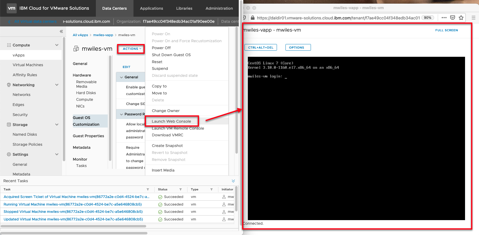 Compute > Virtual Machine > MACHINE > Actions > Launch Web Console