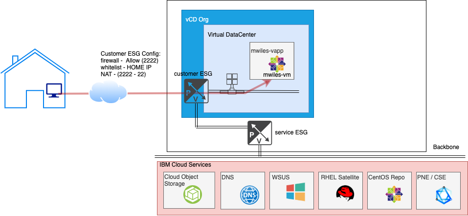 Below is a use case where we will configure inbound SSH from a whitelisted (HOME) ip address to our vm in our vDC.