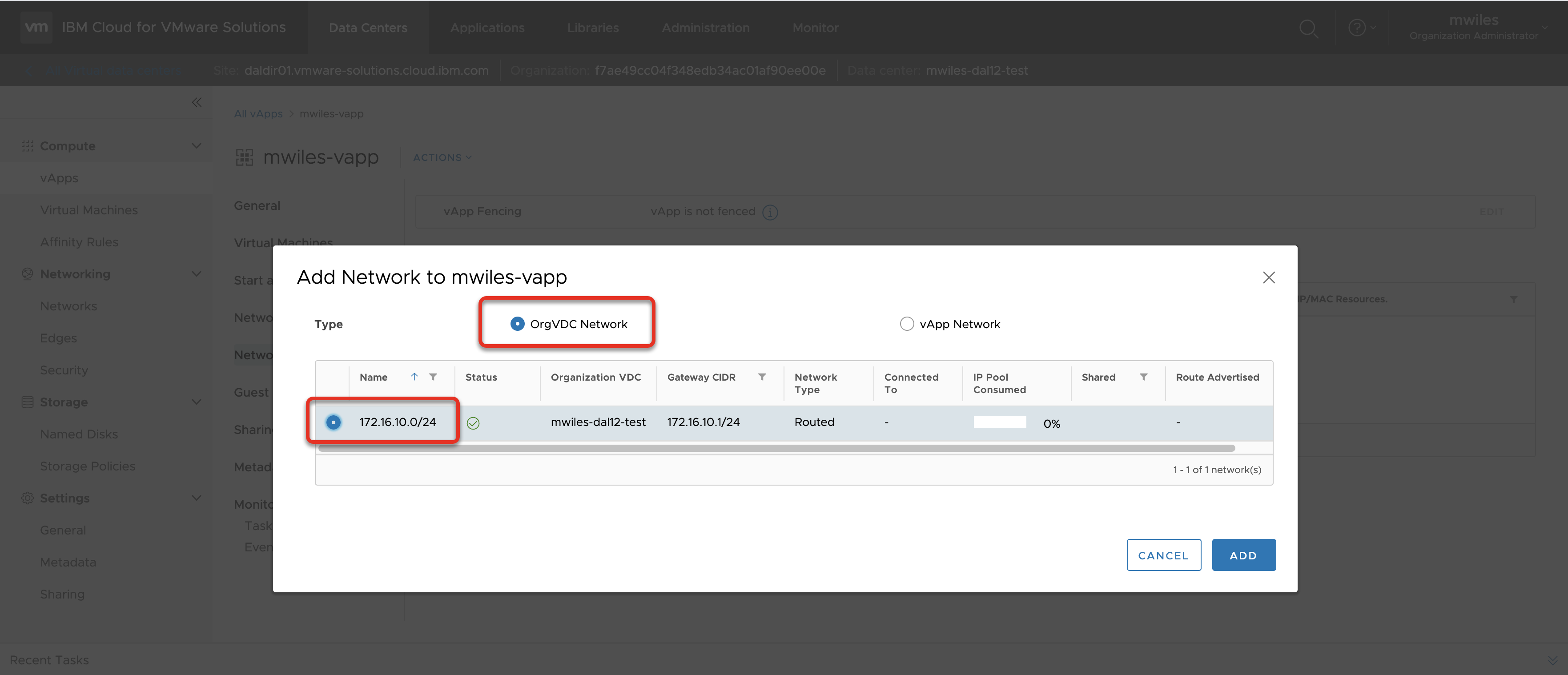 OrgVDC Network > 172.16.10.0/24 (in the case of this example)