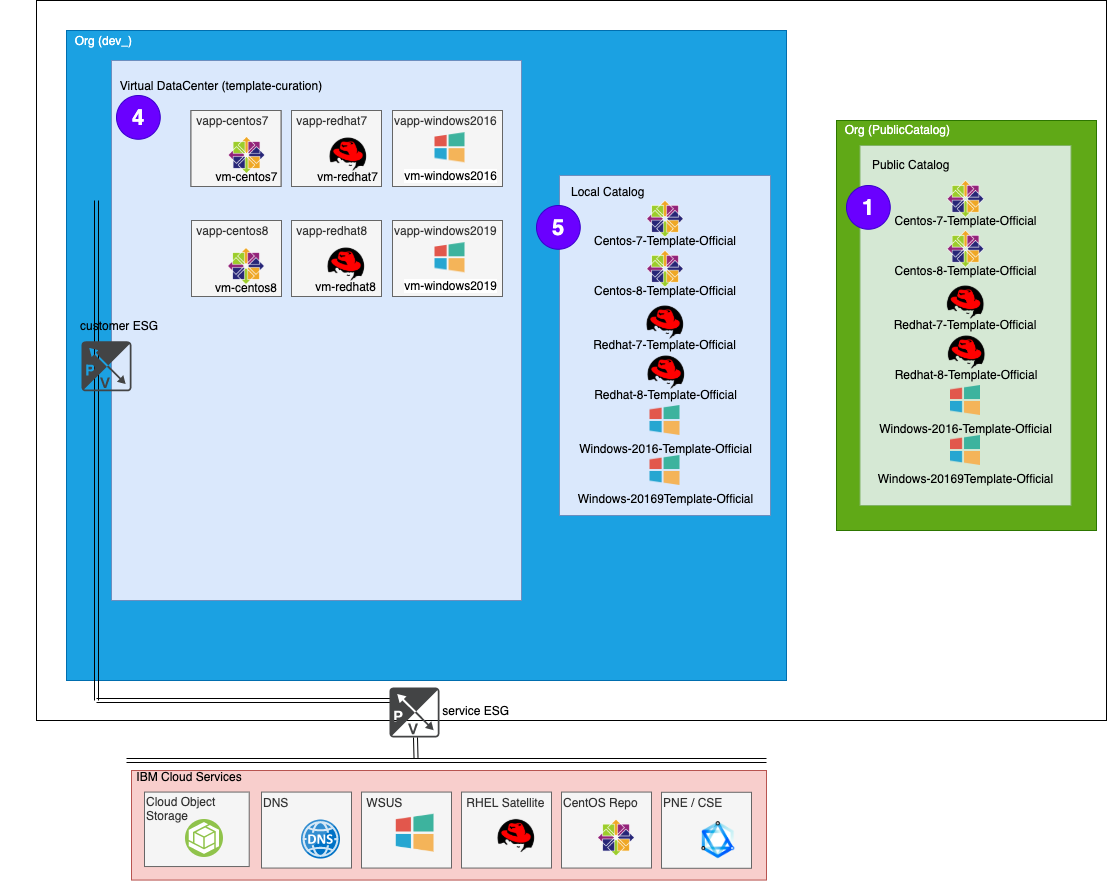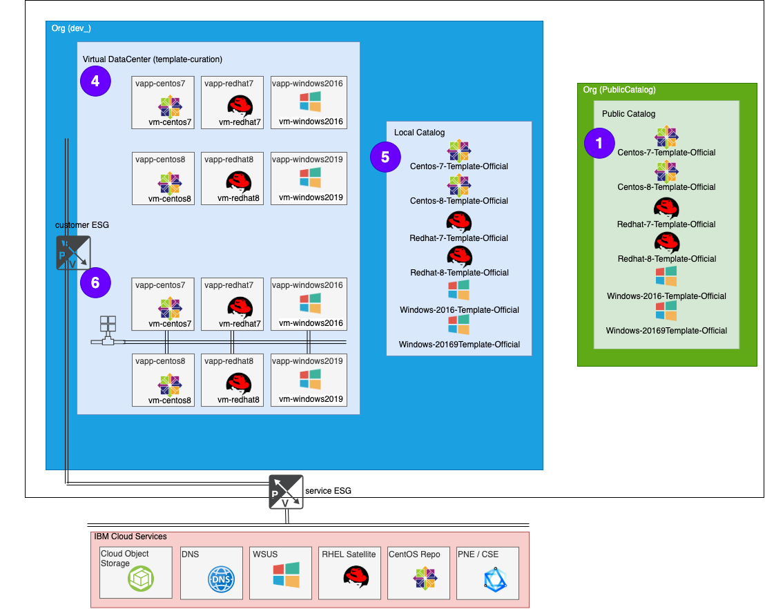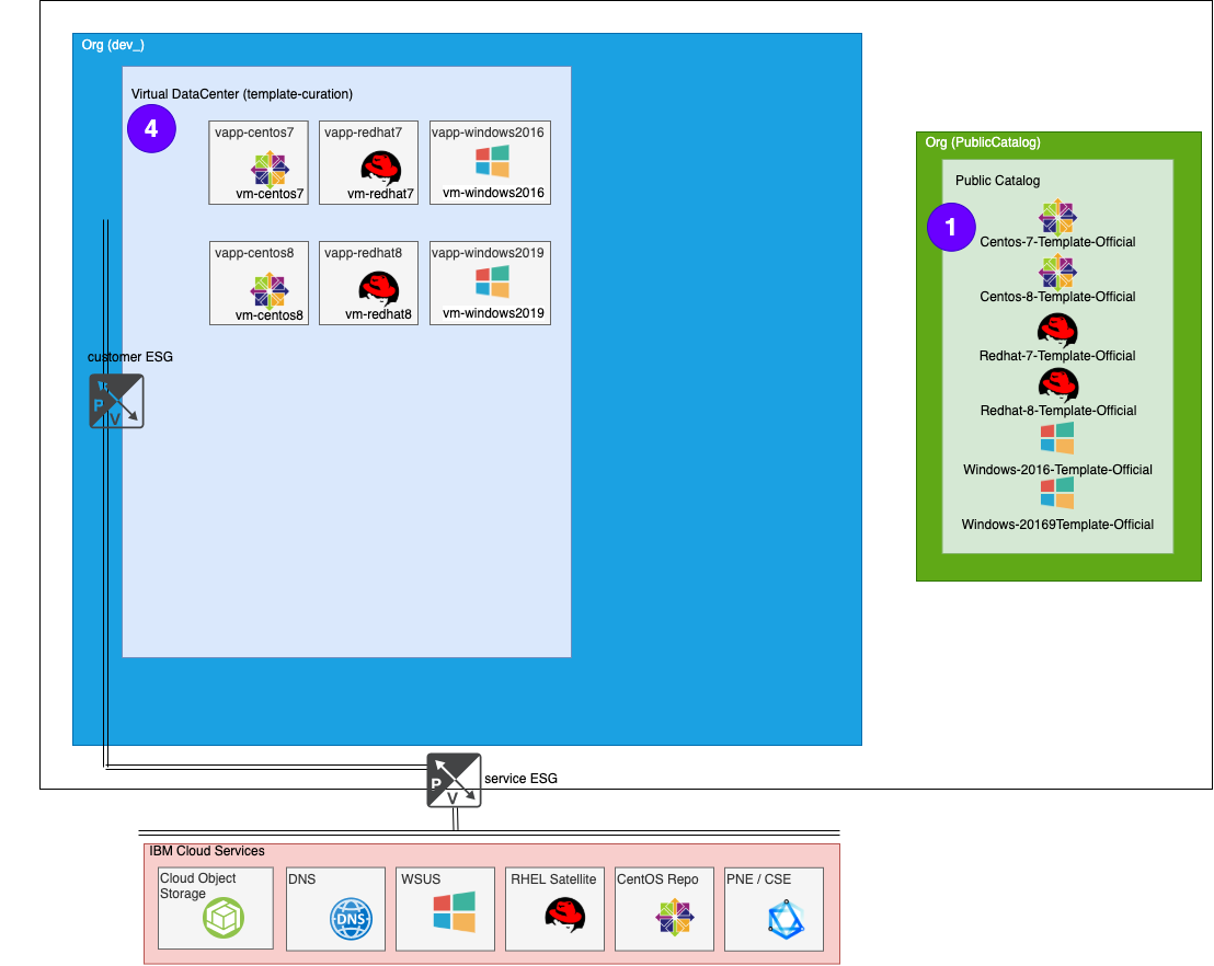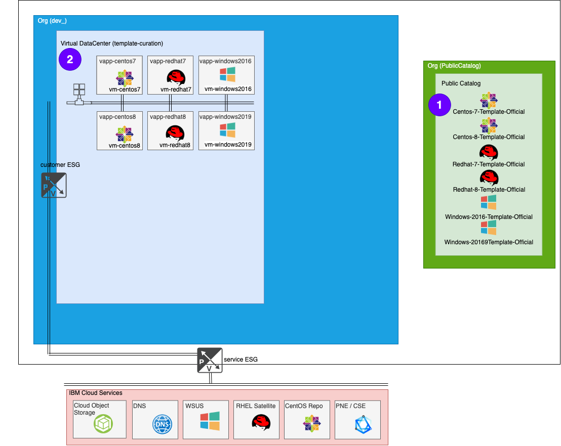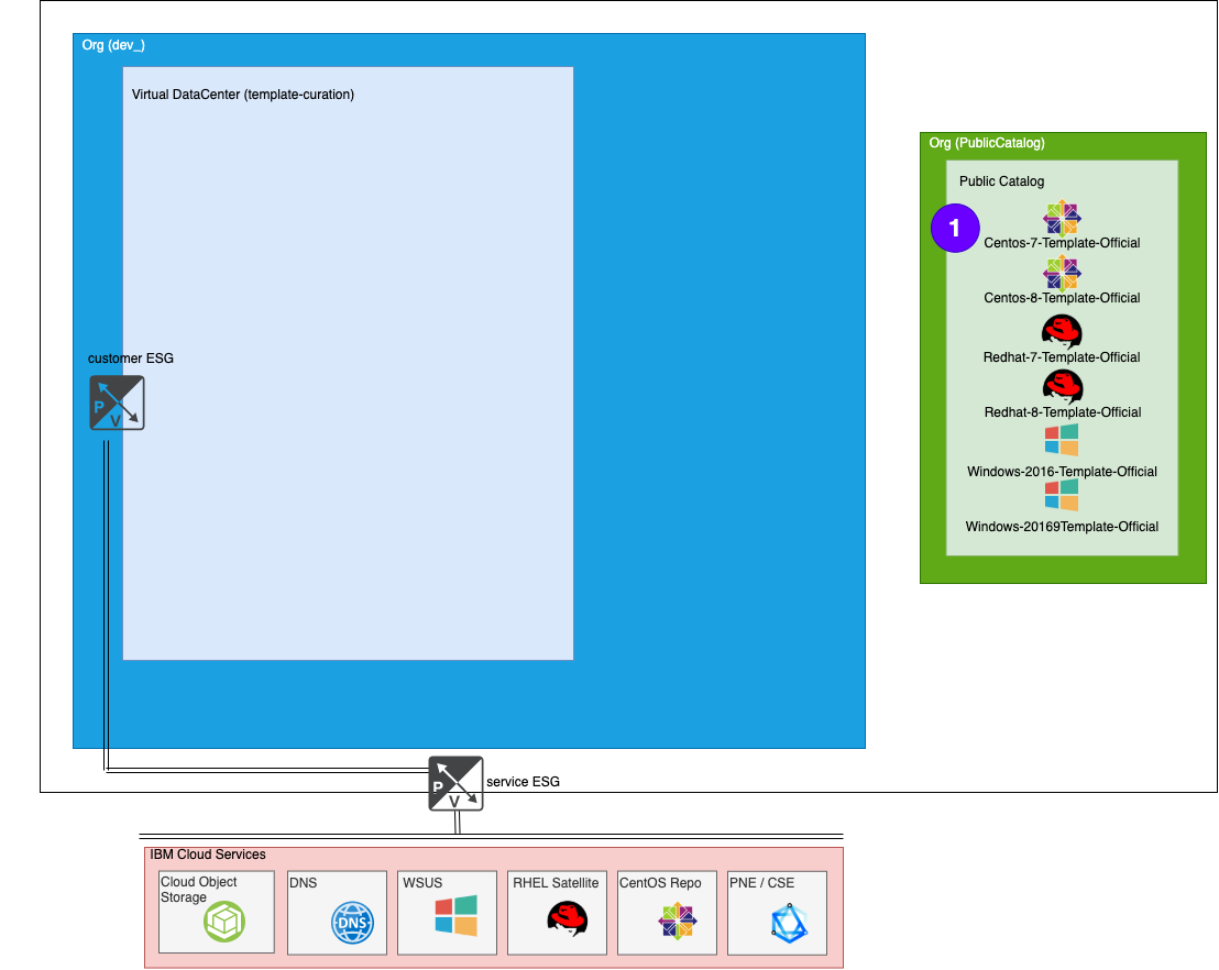VMWare Solutions on IBM Cloud provides several OS templates that customers can use to build up their vDC. These templates are available for all customers via the Global Public Catalog.