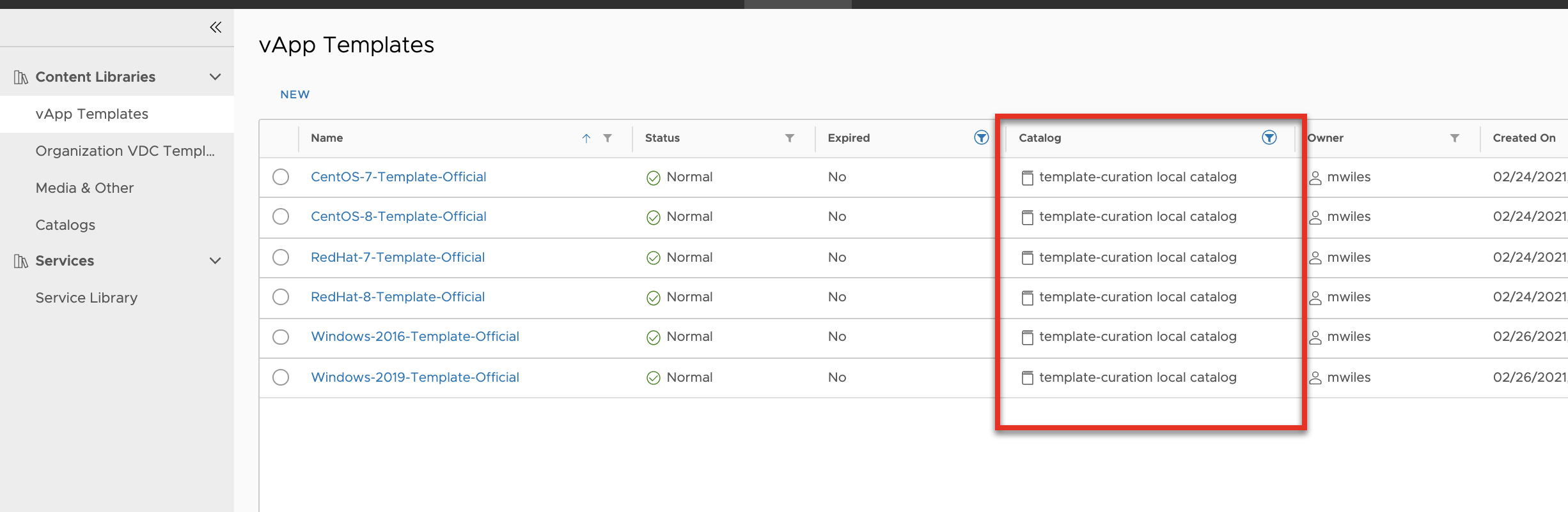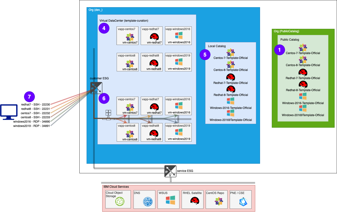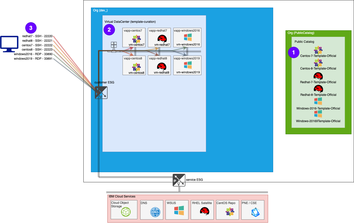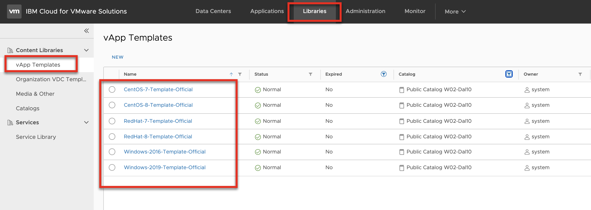 VMWare Solutions on IBM Cloud provides several OS templates that customers can use to build up their vDC. These templates are available for all customers via the Global Public Catalog.