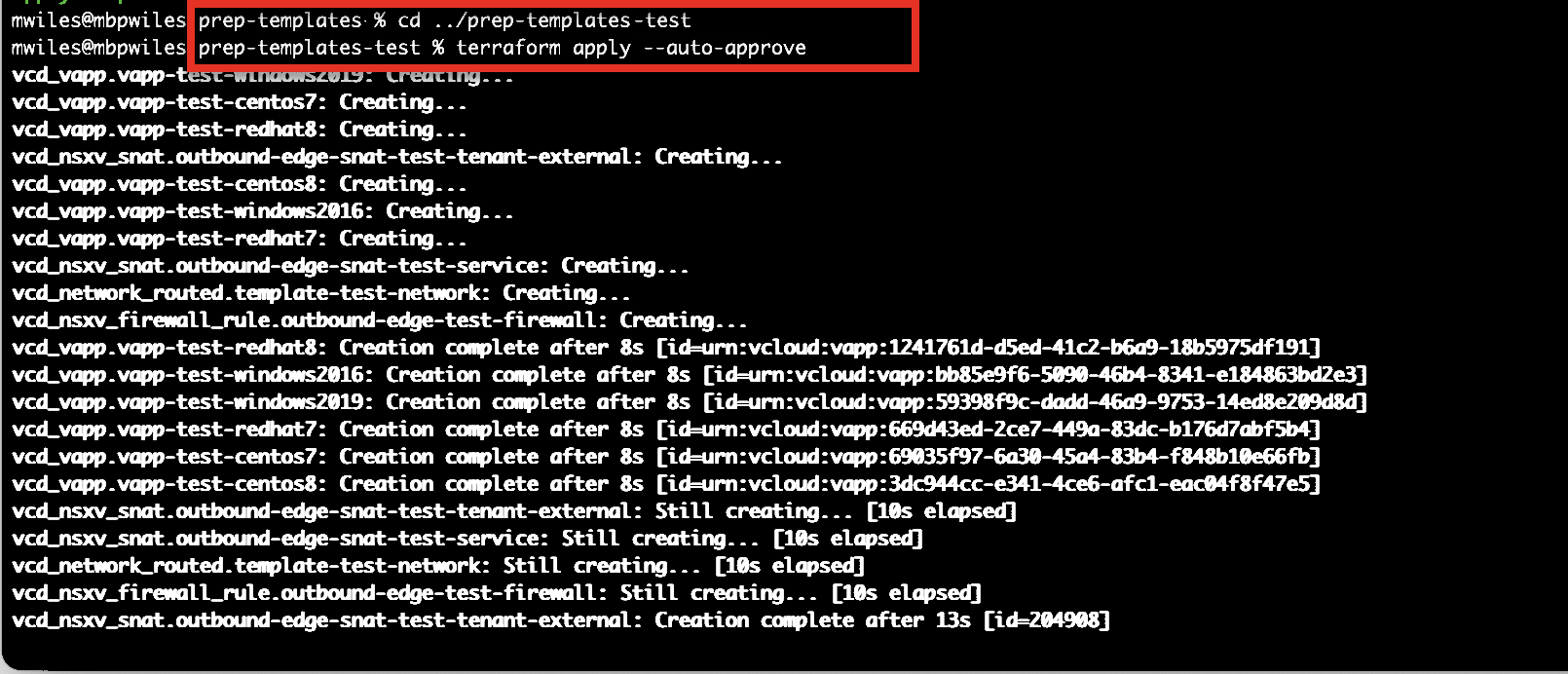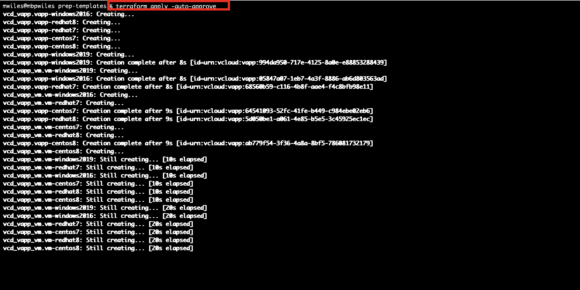 One effort that VMWare Solutions tries to fulfill is to keep these OS templates images up to date with the latest OS provided patches as well as update the installed version of VMWare tools to work with OS Customizations of vCD. This is a very repetitive task and updates are pushed out monthly, if not more frequently, so it’s a perfect fit to use terraform.