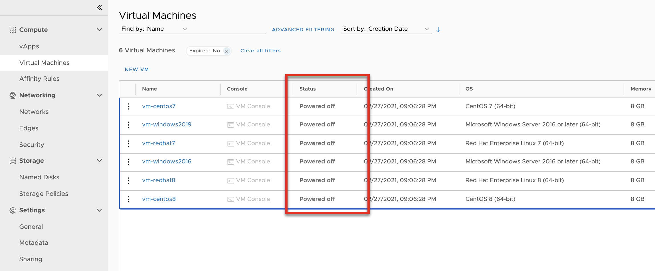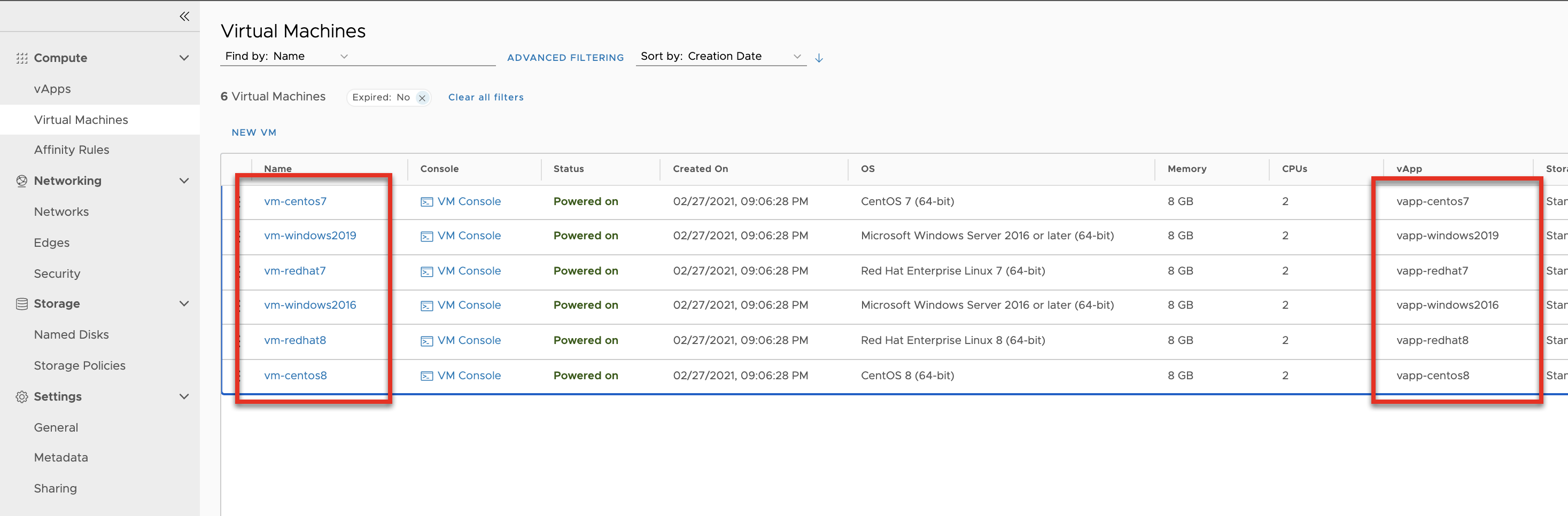 - Power off the VMs and vApps