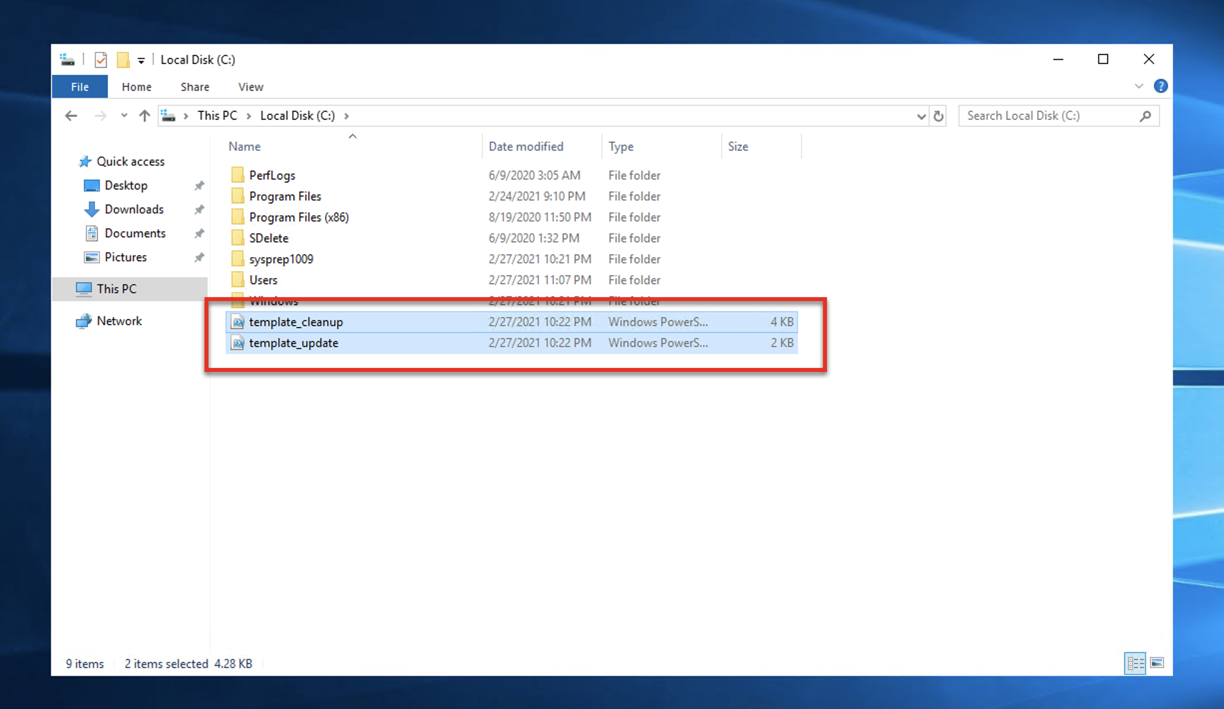 - Powershell (C:\template_cleanup.ps1)