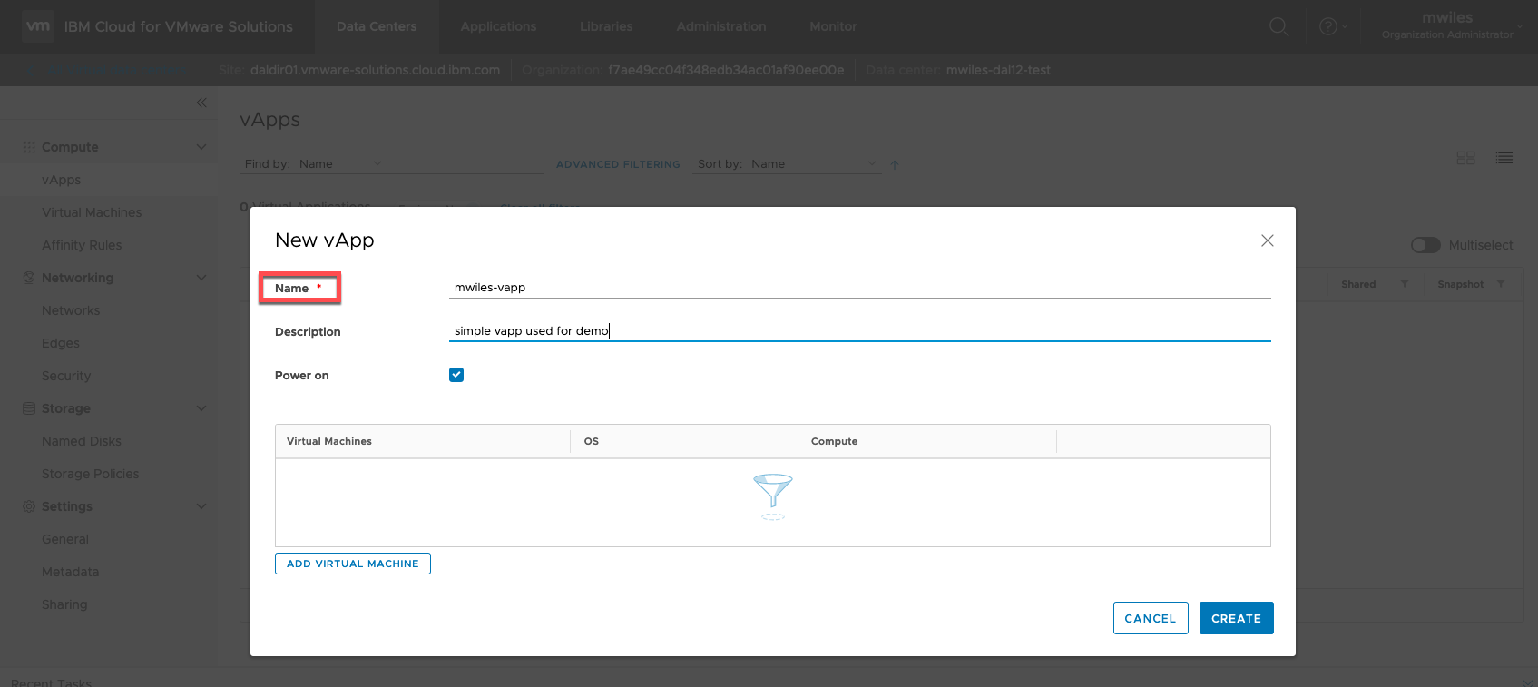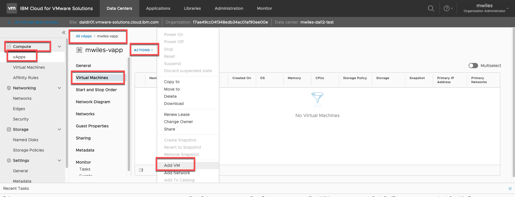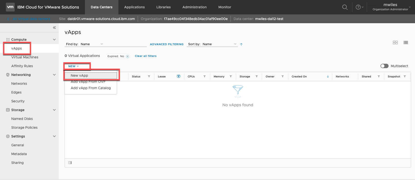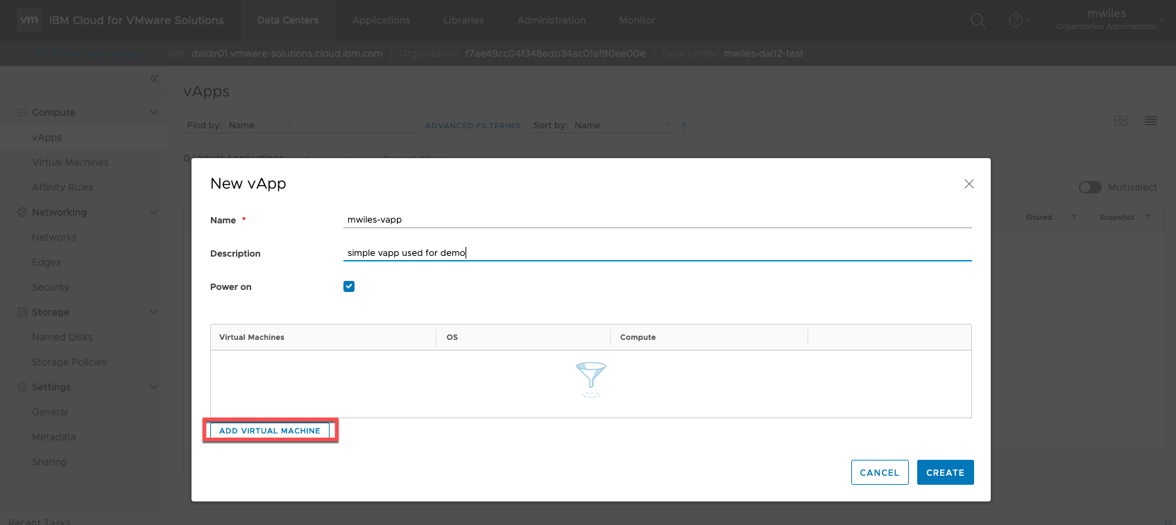 Compute > vApps > New > New vApp > Add Virtual Machine