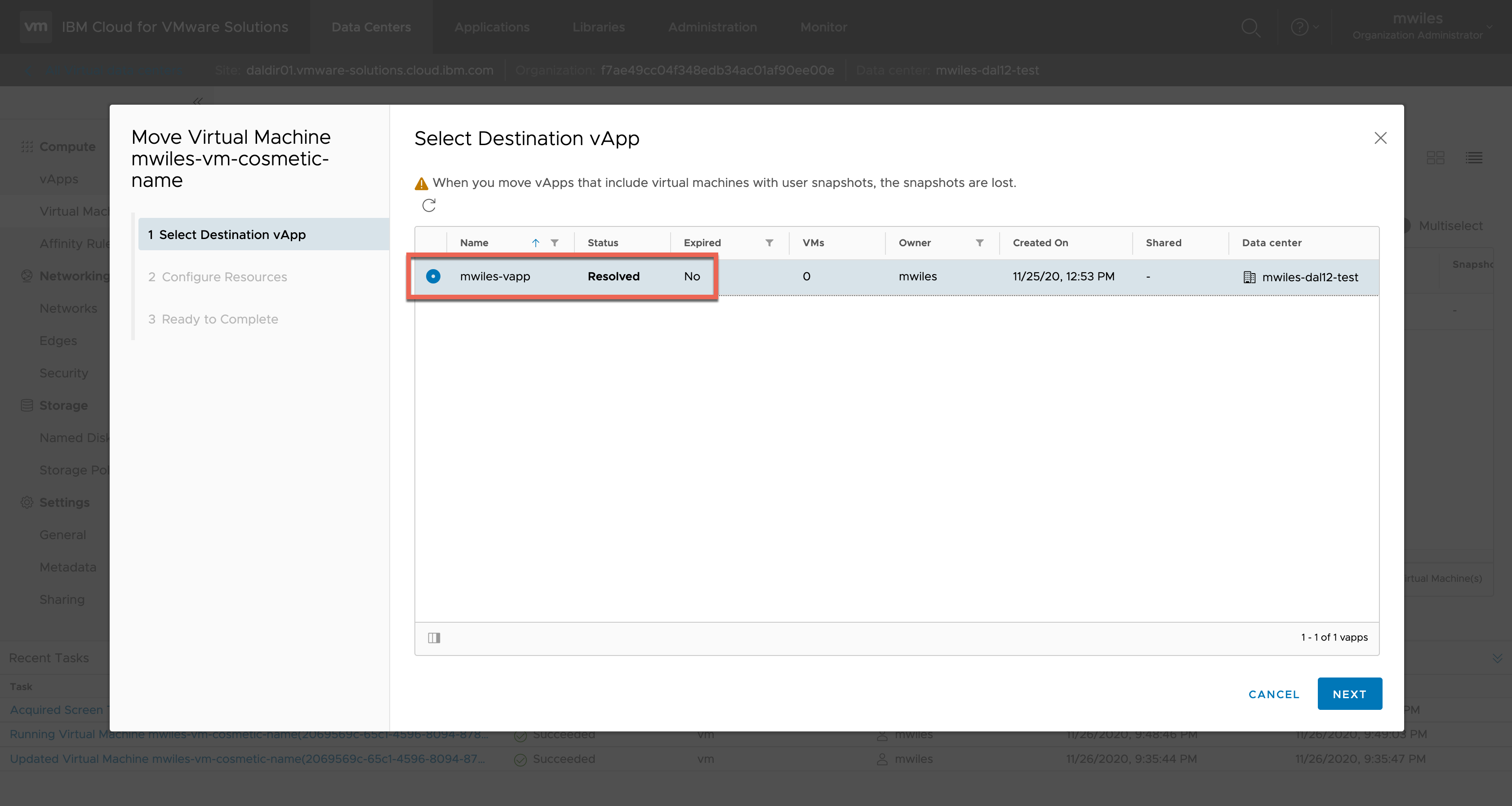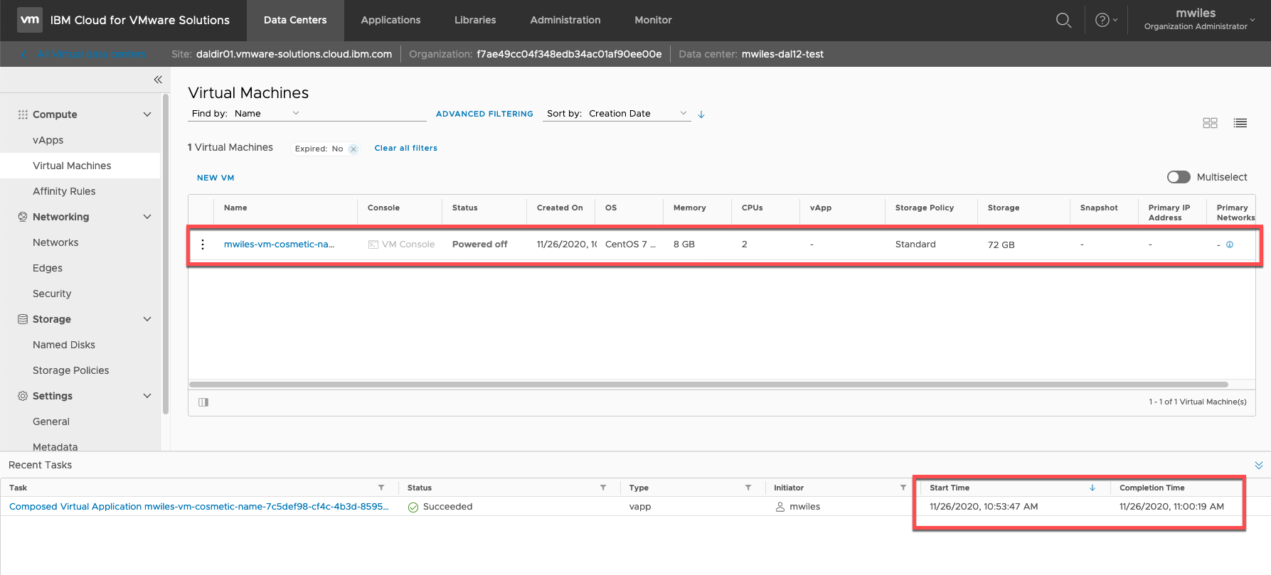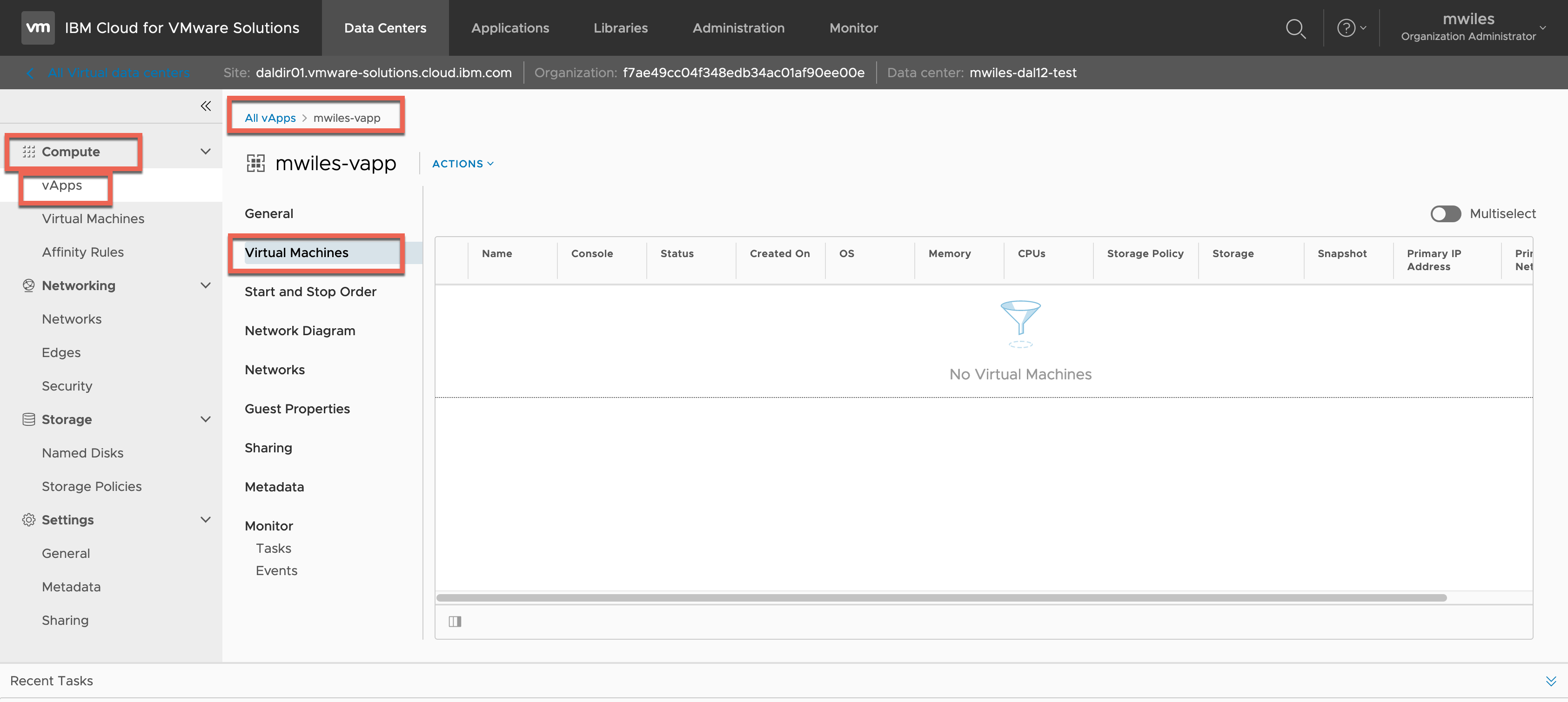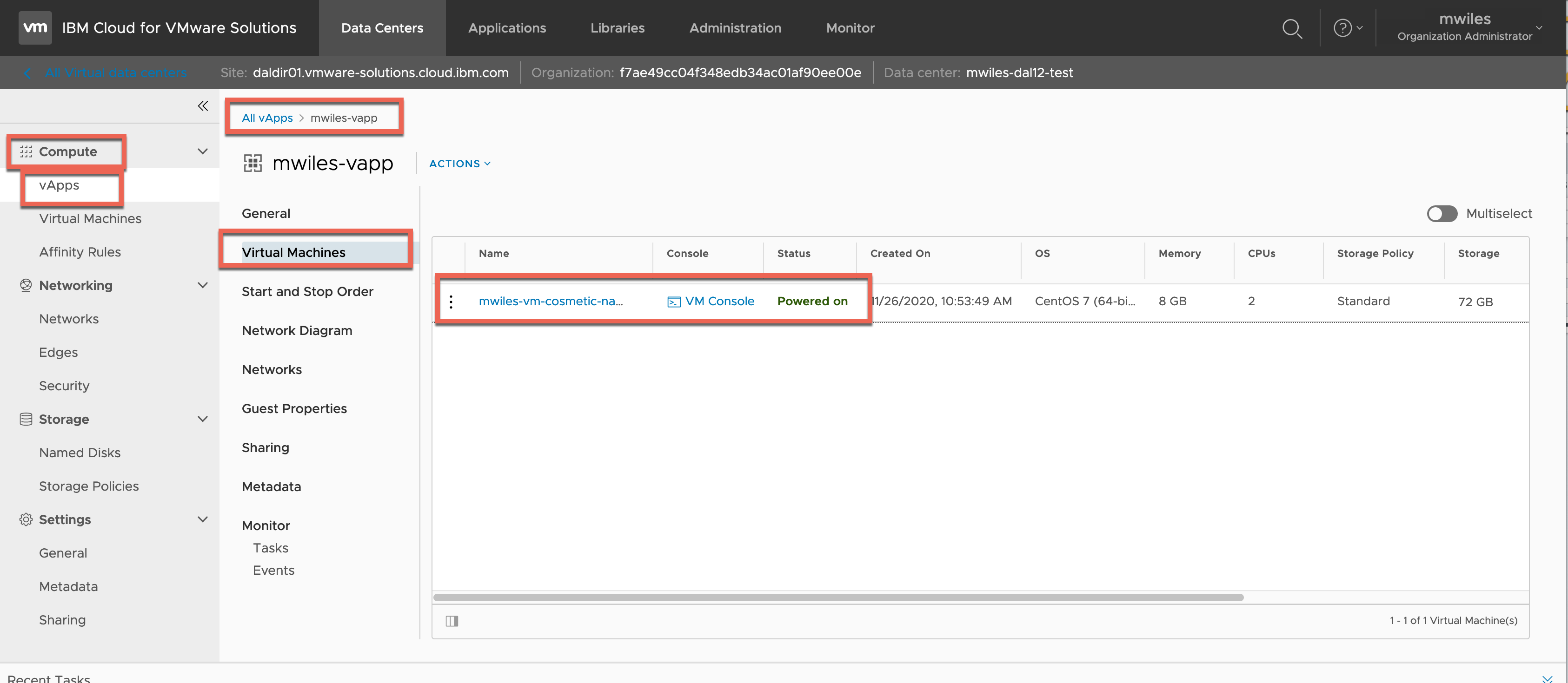 Finally once the task is completed, navigate back to the list of VMs in the vApp and you will see the VM is now in the vApp.