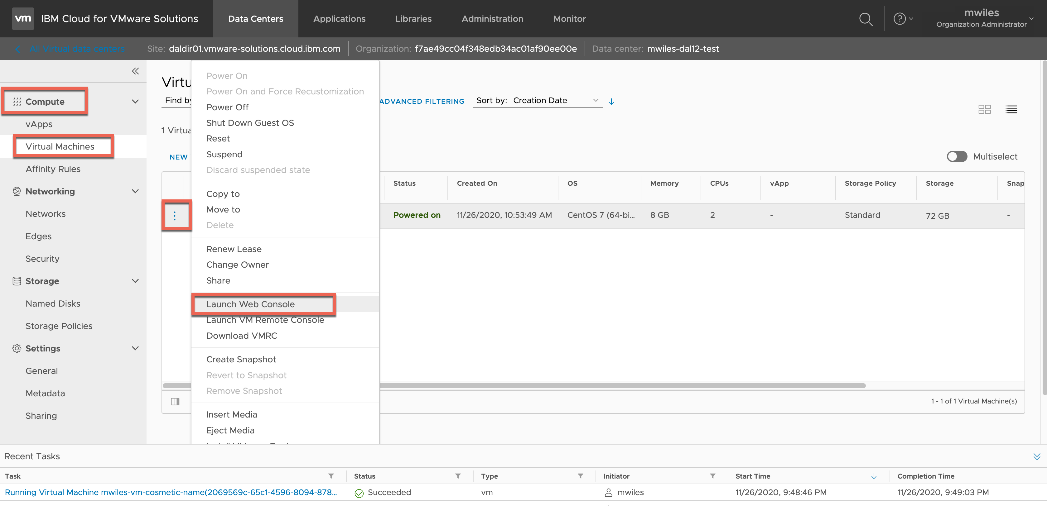 Compute > Virtual Machines > VM Menu > Launch Web Console