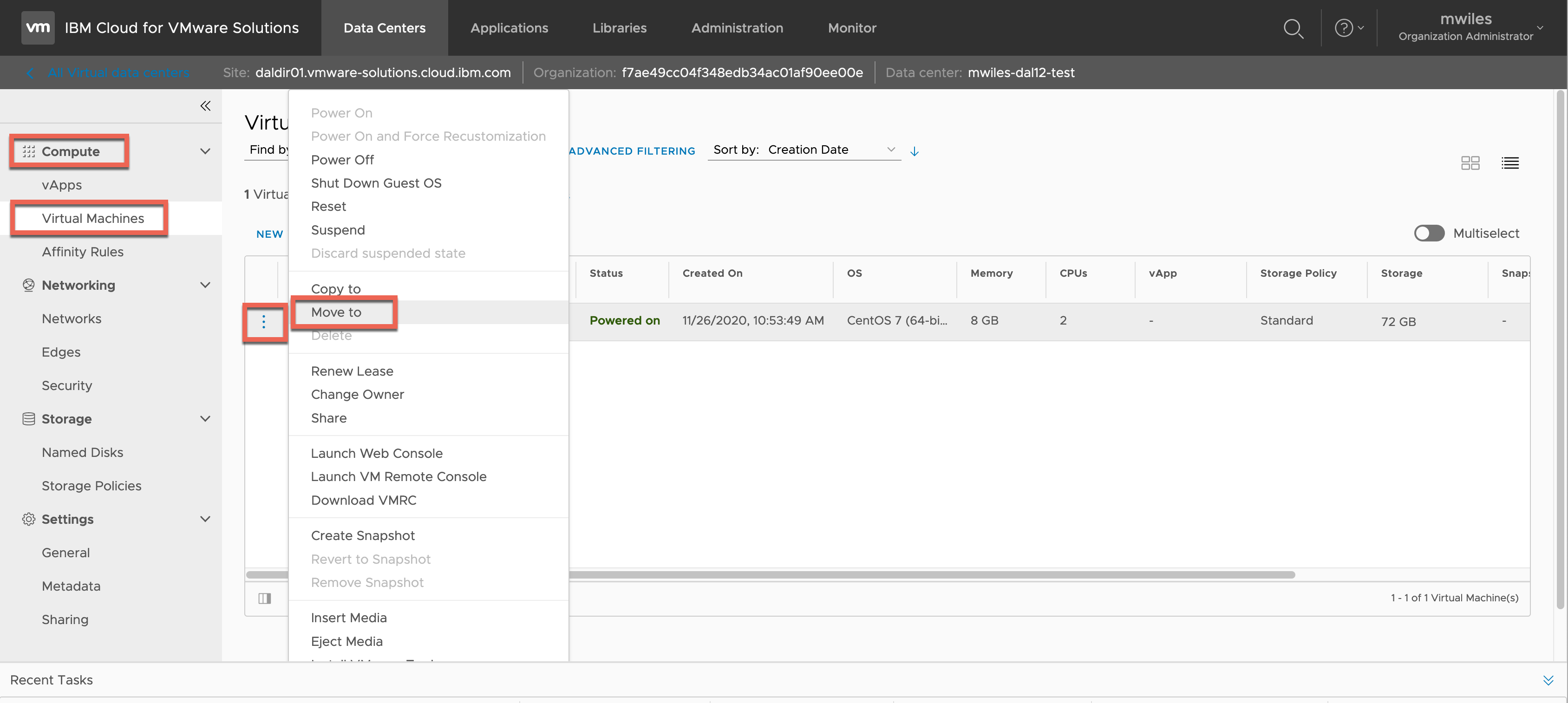 - Move / Copy to other vDCs - organization capabilities to clone or relocate.